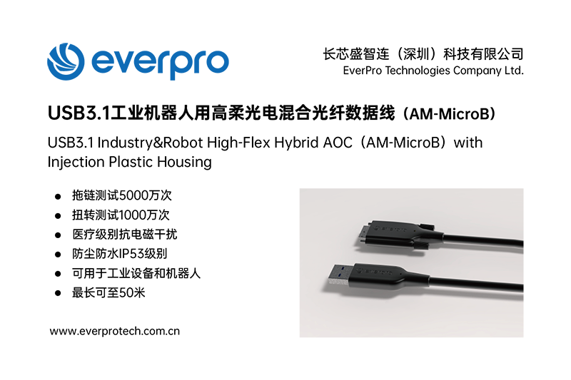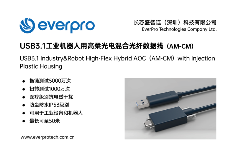 在现代工业自动化生产中,涉及各类检查、测量和零件识别工作,需要大量应用机器视觉系统,用相机替代人眼进行图像抓拍和处理。俄罗斯专享会智连专为机器视觉行业研发的多款高柔有源光纤USB数据线在以光纤作为传输介质的基础上,集成铜缆,采用特种BendRobust®高强度抗弯光纤多股极细特种导体防弹高强度非金属加强件超柔耐磨绝缘材料,不仅可以给相机设备供电还可保证系统稳定持续运行。