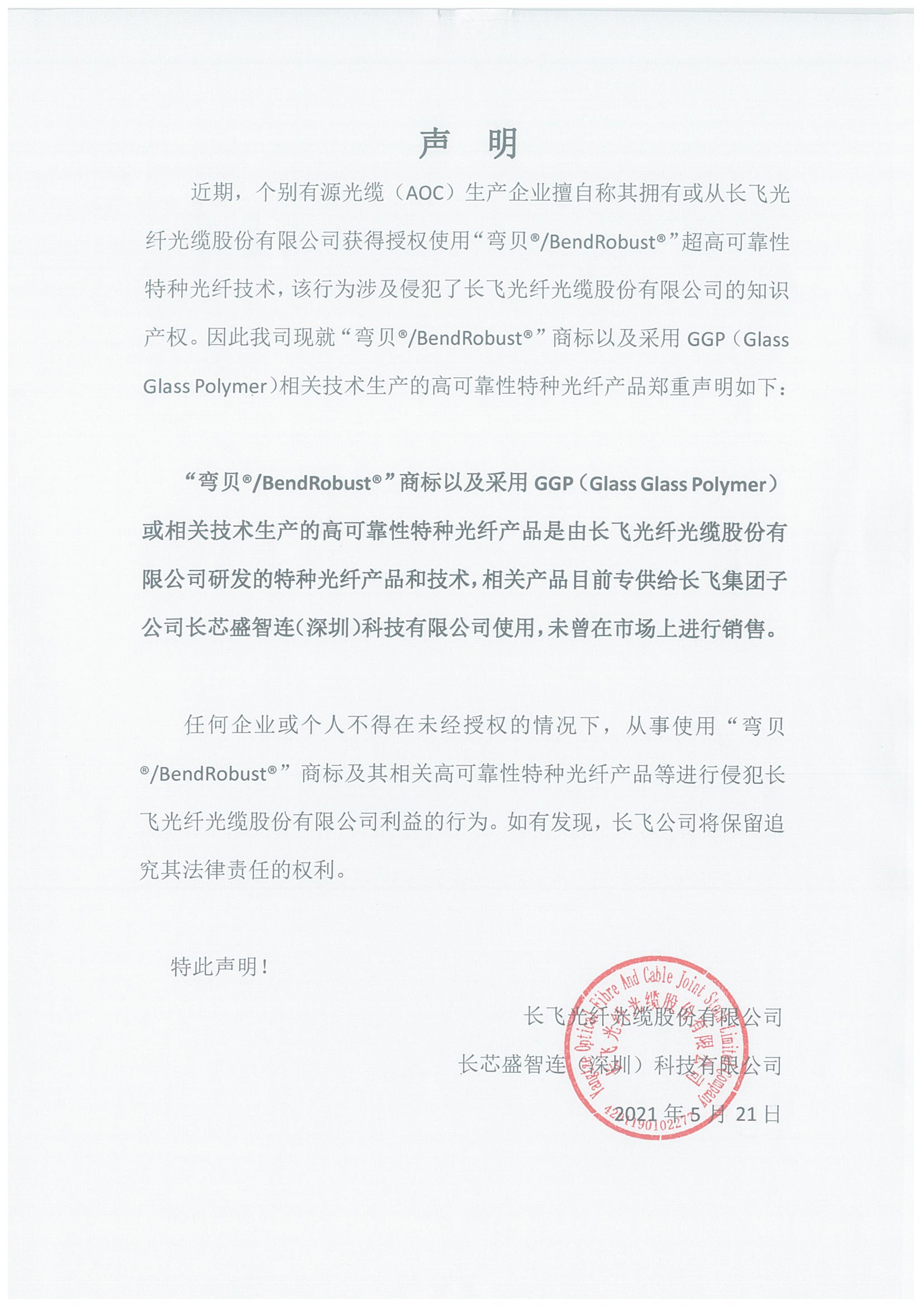 长飞、俄罗斯专享会智连关于特种光纤产品技术的联合声明