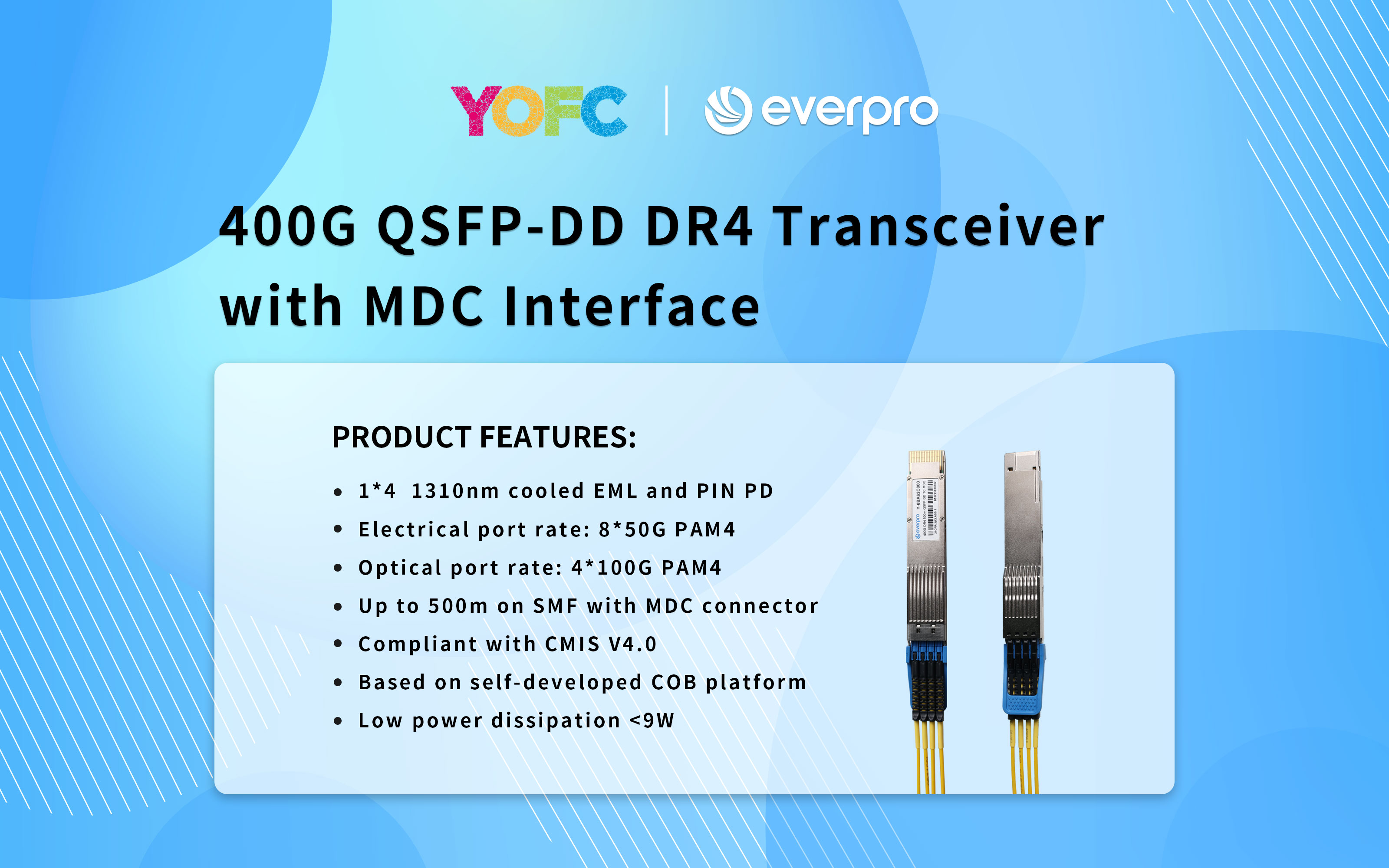 俄罗斯专享会400G QSFP-DD DR4 MDC光模块主要特性:
