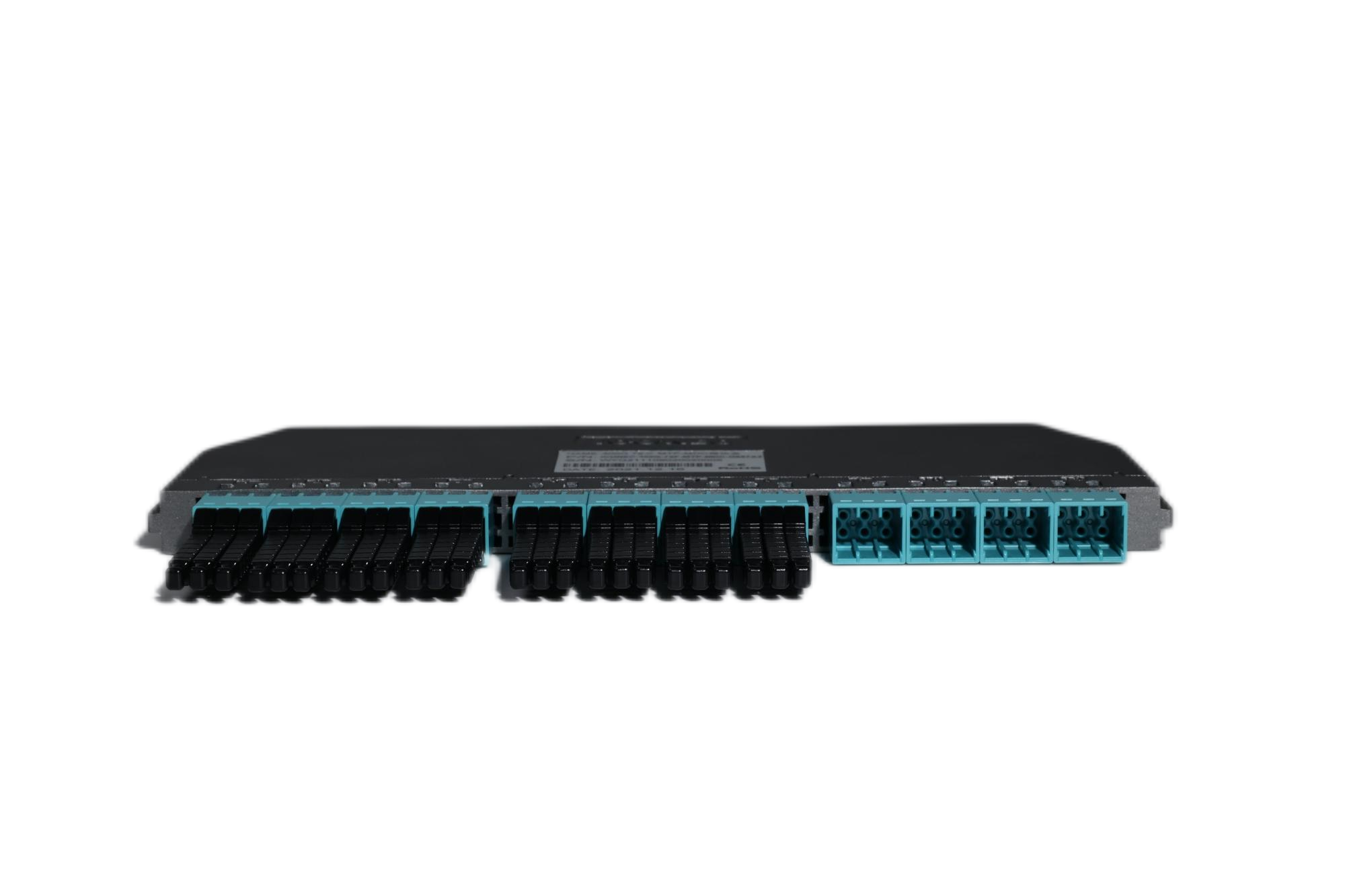 •3倍于LC连接器的布线密度,最大支持1U内216接口(432芯)