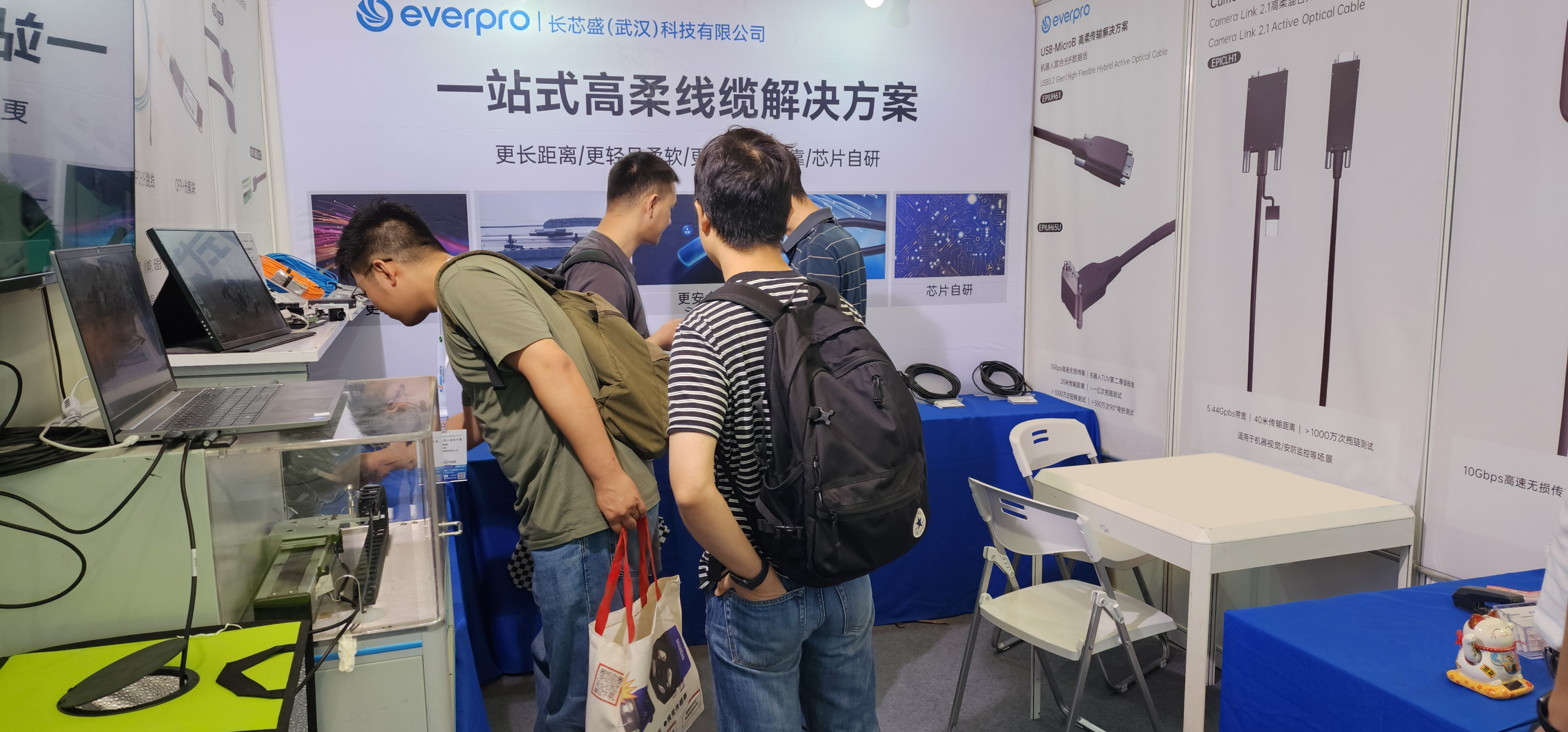 作为相机头部企业的首选品牌,俄罗斯专享会(武汉)科技有限公司(以下简称“俄罗斯专享会”)携旗下机器视觉领域高柔有源光缆亮相展会。